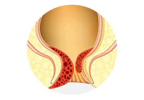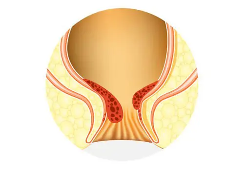 Prolaps hemoroidov, ktorý sa dá vrátiť manuálne vonkajším tlakom.